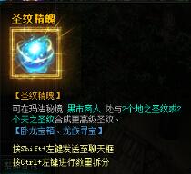 圣之圣纹:集齐一定数量的“神之圣纹”和“高级圣纹精魄”后于“黑市商人”处兑换获得